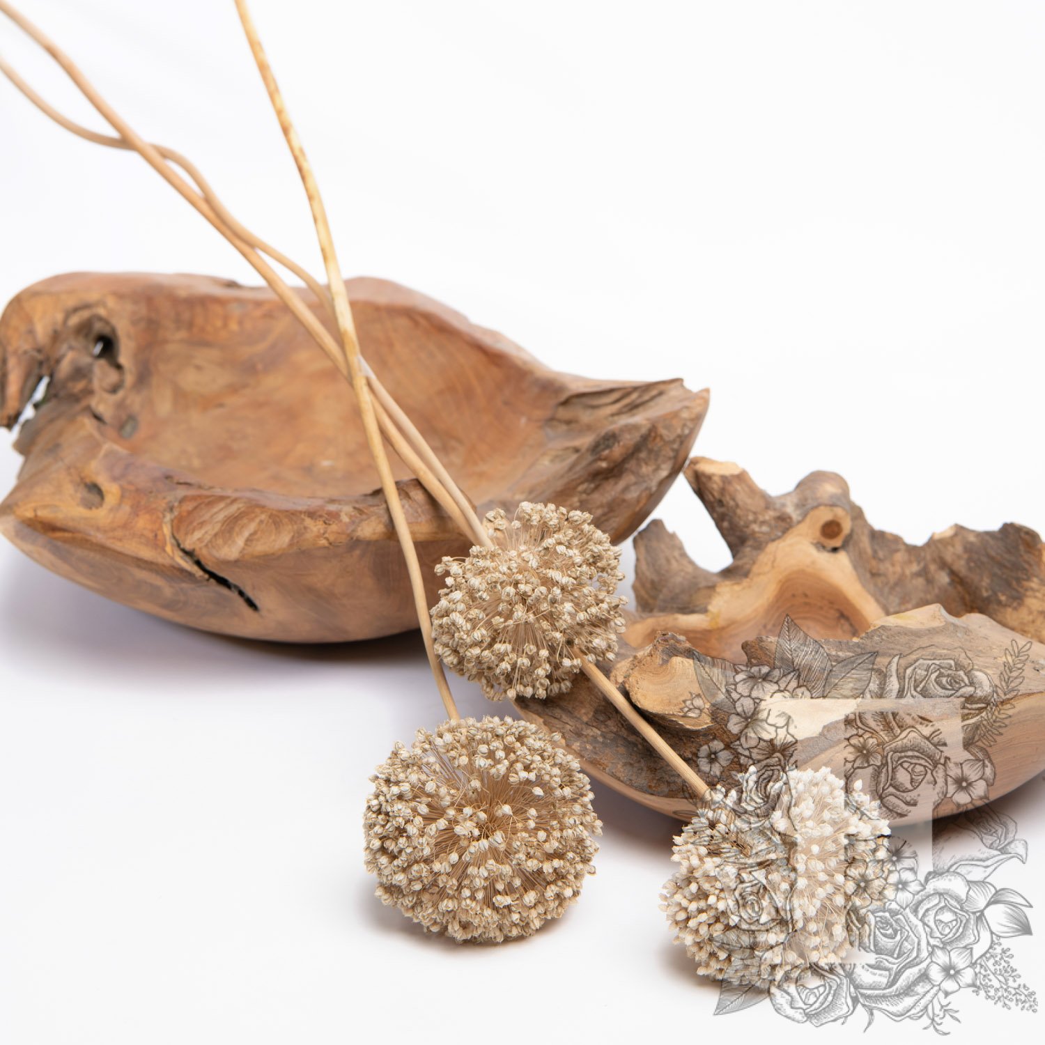 Spherical orbs of intricate petals make up the dried Allium. With a long stem, this dry flower adds length and dimension to arrangements, and when paired with preserved foliage it offers a rustic bohemian aesthetic. Muted in tone, the shade makes the Allium perfect for adding natural flare to office spaces, hotel décor, and corporate displays.