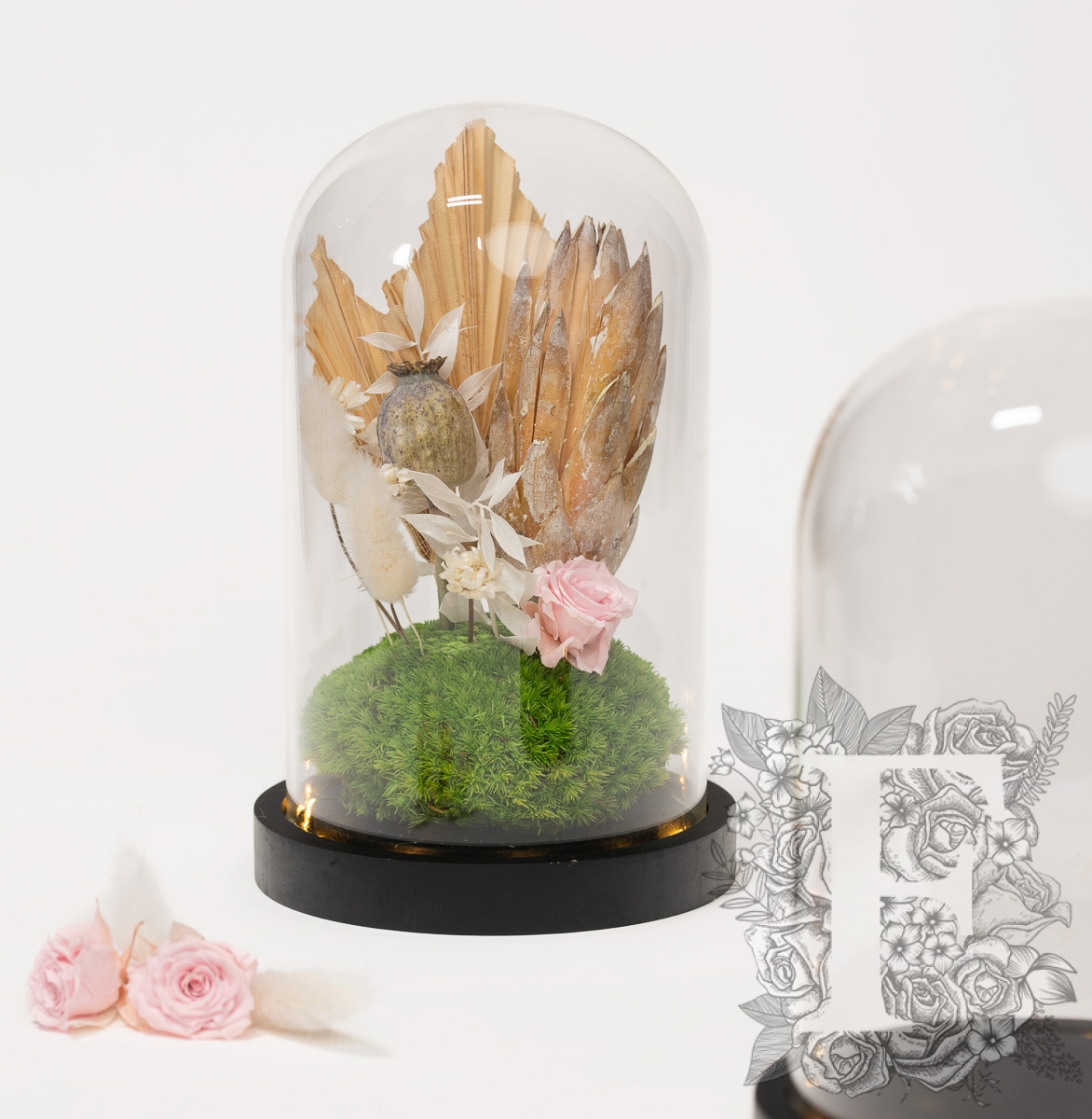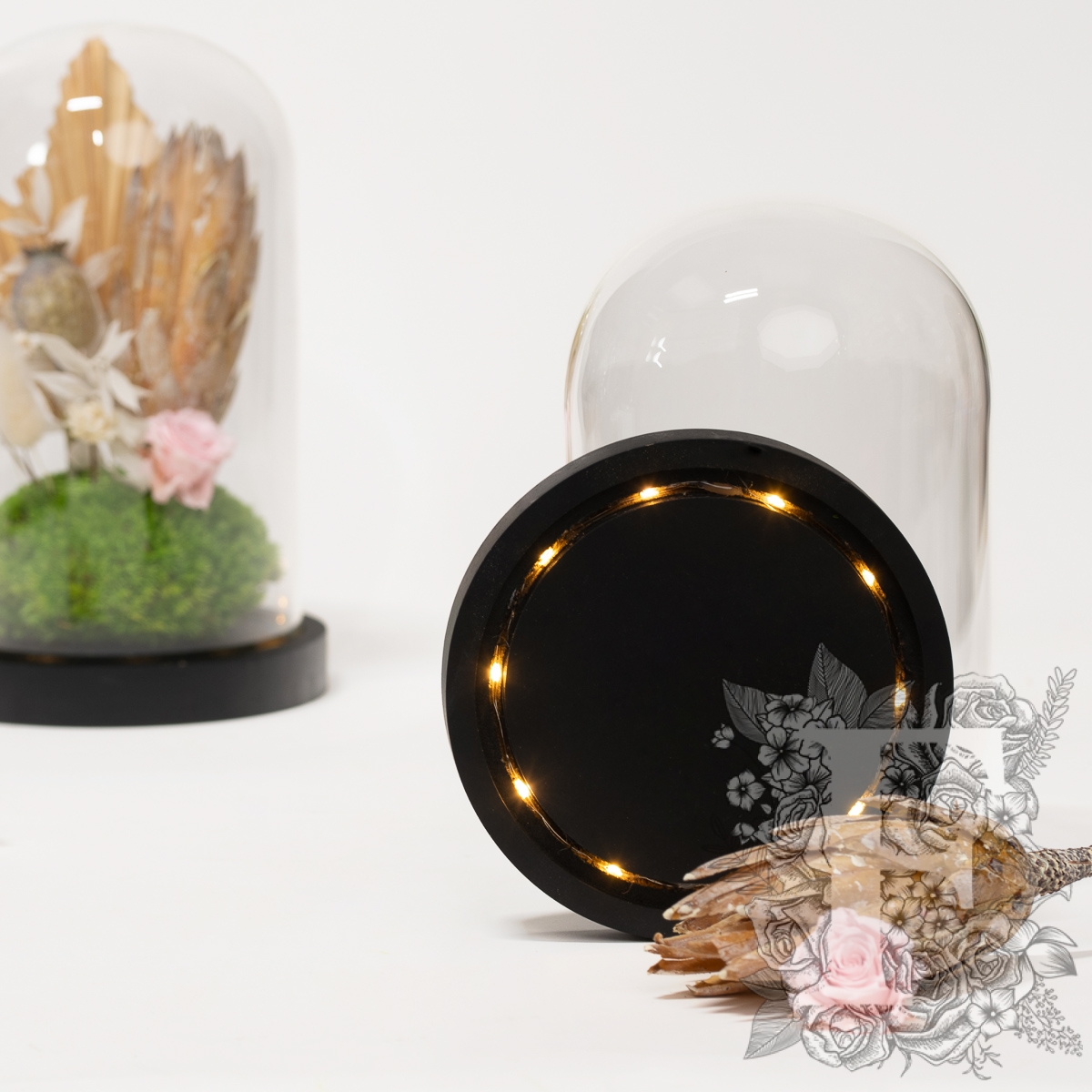 Our luxury Globe Bell Jar is the perfect case for creating a stunning gift or centerpiece ornament. Ideal for showcasing intricate florals, this case includes LED light fixture to exhibit your florals in all their glory. Our large size allows freedom on exhibiting larger pieces.