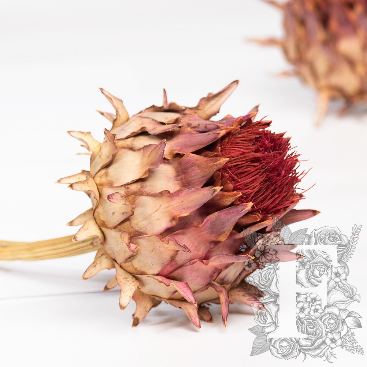 Cardonni Artischocke is a thistle from the sunflower family with a round head wrapped in sharp petals. With a naturally claret hue, Cardonni’s exotic appearance is sure to enhance your creations with texture and colour.