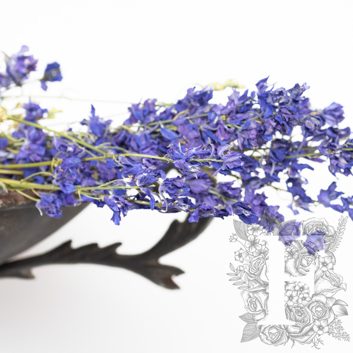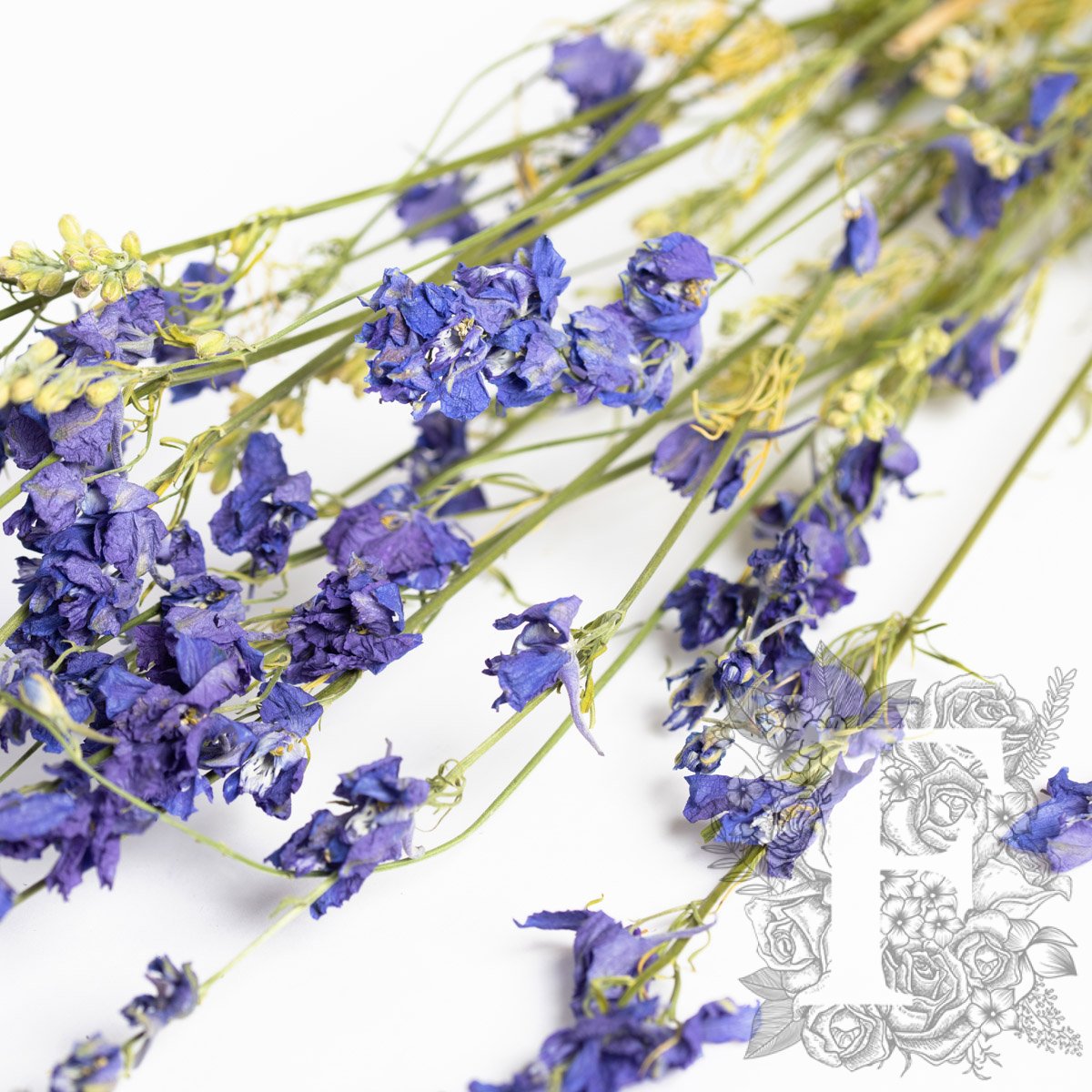 As a textured foliage, Delphinium bring a subtle, elegant touch of colour to bushy bouquets and arrangements. The preserved flower is laced with petite, ruffled preserved flowers that create a rustic, countryside aesthetic, ideal for event design, commercial arrangements, and corporate interiors.