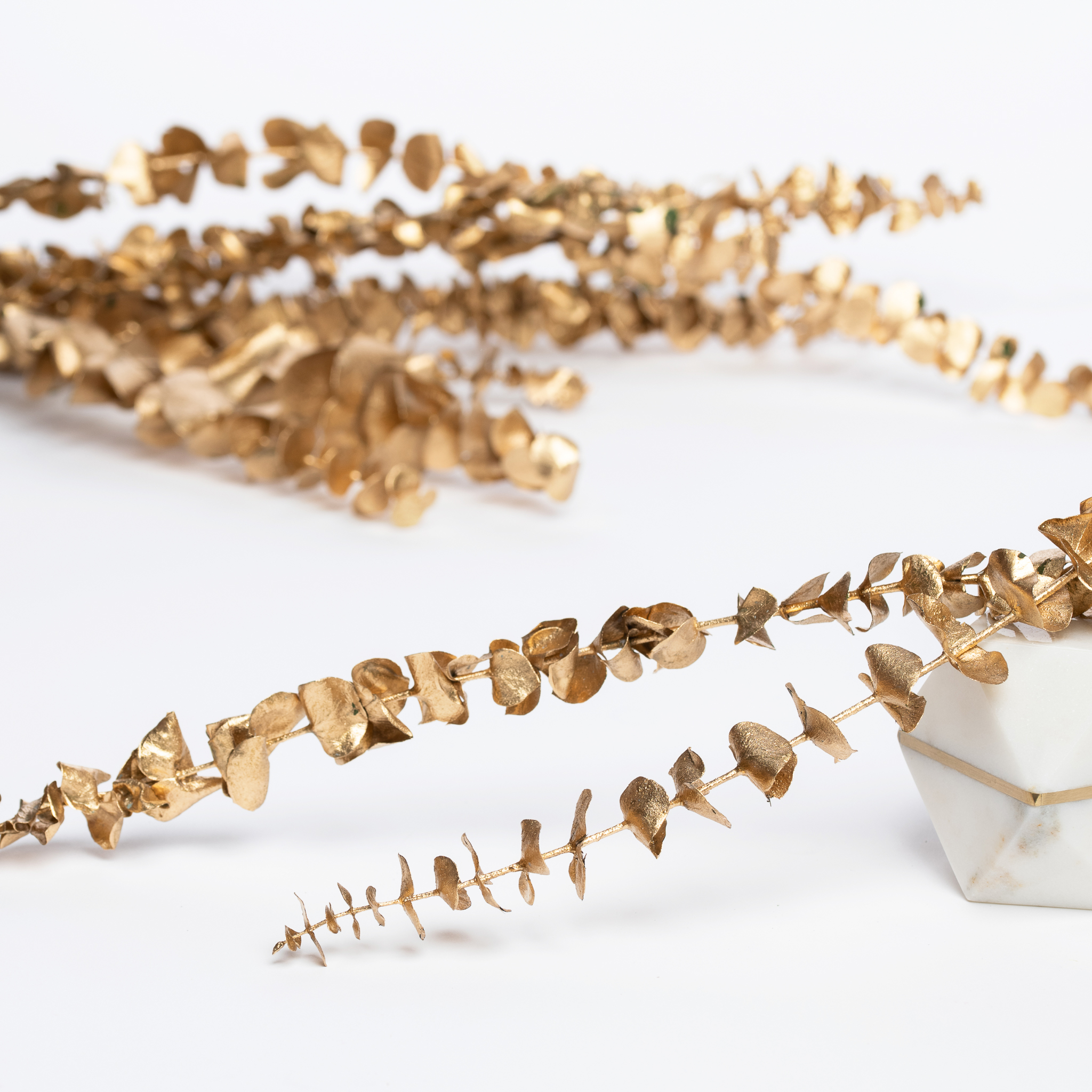 If you are looking for a more discreet accent to your designs, then the baby eucalyptus is a perfect choice. Available in suave silver or luxurious gold, preserved baby Eucalyptus is an extremely versatile foliage which can work as a standalone piece or be paired with an assortment. The coin shaped leaves and slender stems help give your work more of a presence.