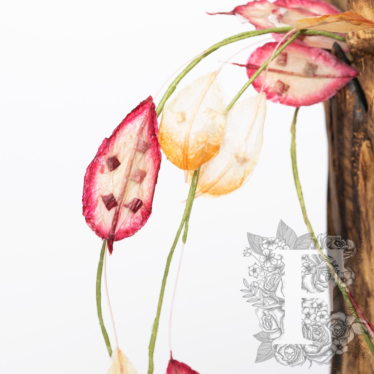 Guirnalda Hoka Moneda is a beautiful hand-crafted vine featuring preserved Lunaria leaves. You can drape them, put them in garlands or use them as creatively as you like. The Guirnalda is available in different colours which will ensure you are able to accent your designs perfectly.