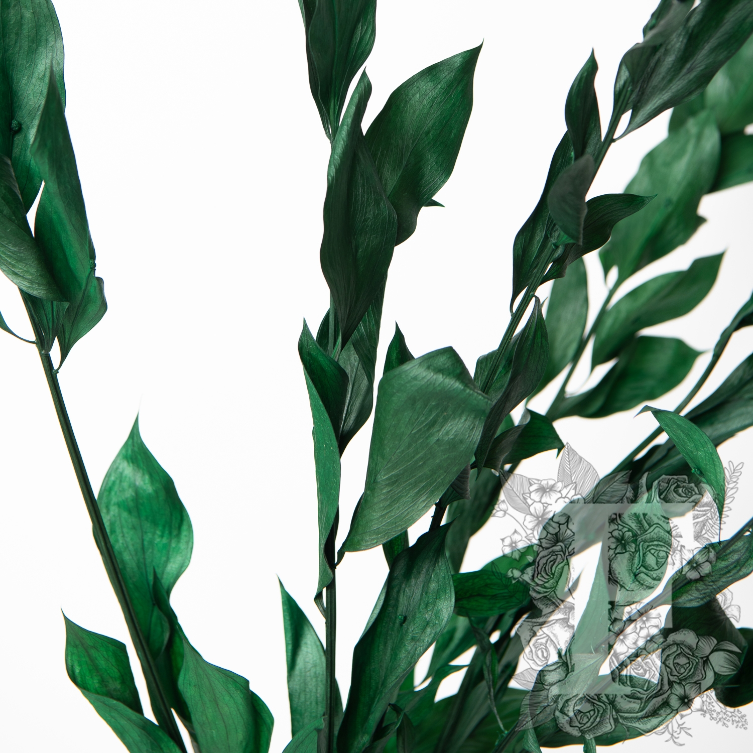 Hard Ruscus, available in a leafy natural preserved branch bunch, is a highly versatile branch to fill and strengthen an arrangement. The Hard Ruscus’ leaves suit and enhance a myriad of flowers, creating a perfect natural filler heightening any display.