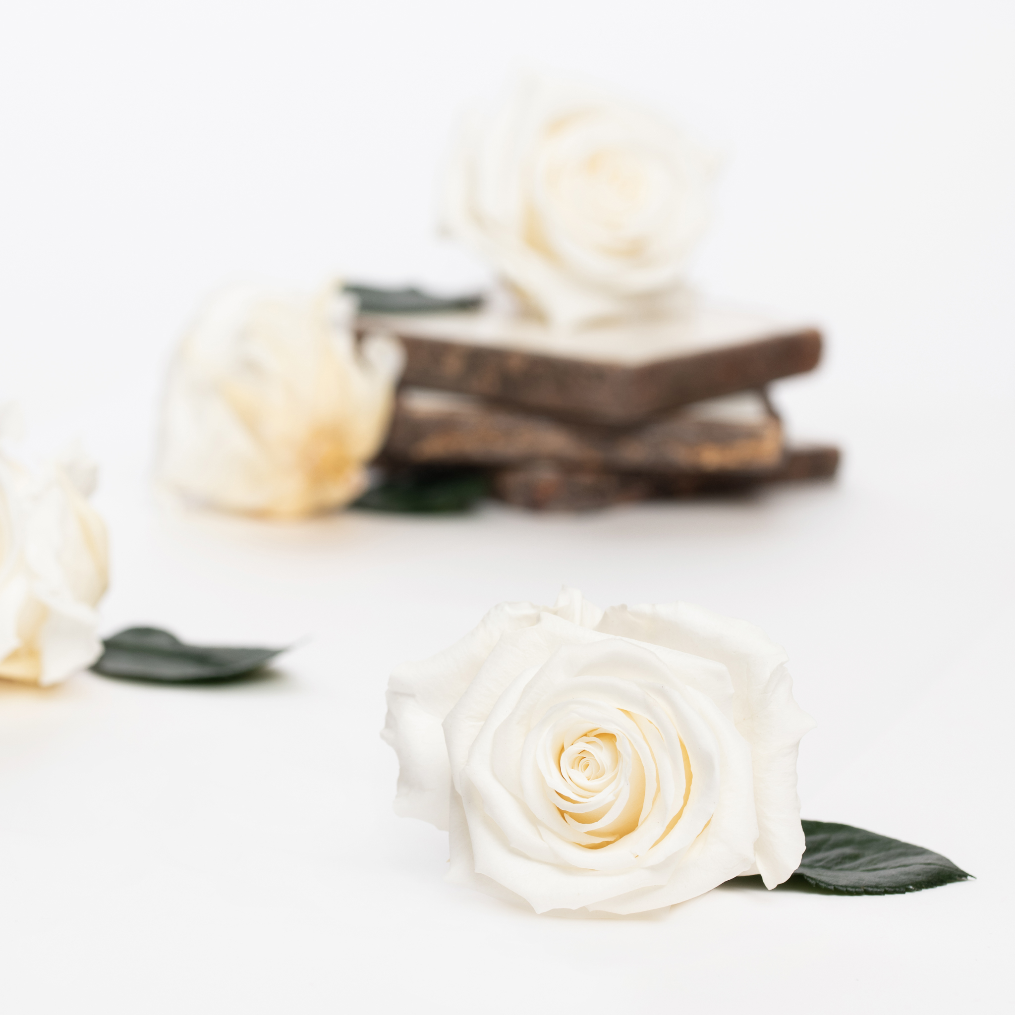 Evolution: As time goes on, these preserved roses tend to wither and fade. You’ll find that lighter colours will discolour more than dark ones.