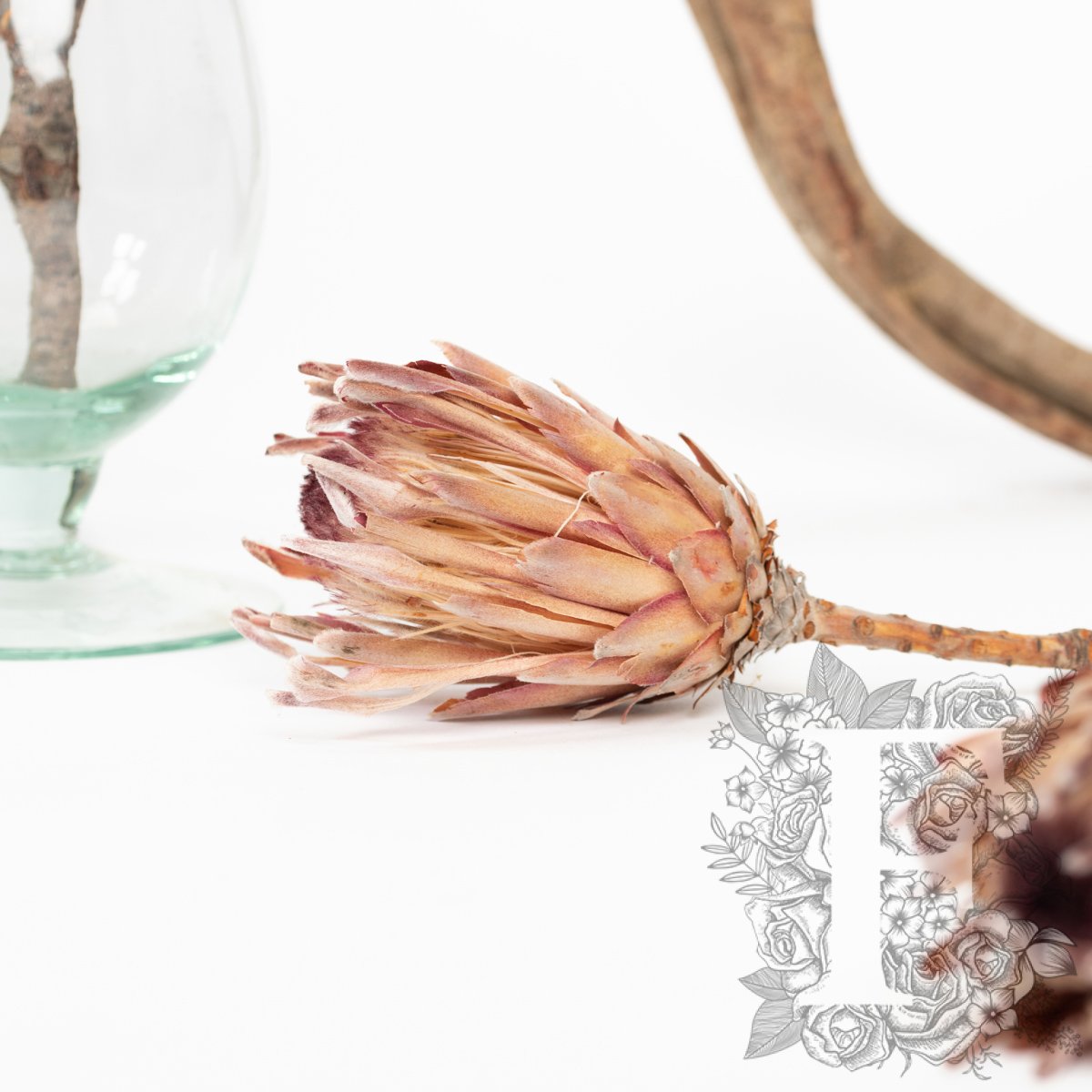 The pinecone shaped Pink Ice preserved dry flower is a structural, unique dry flower that adds dimension and angular shape to arrangements. With a beautiful velvety texture, and soft pastel shades the Pink Ice suit a range of colour schemes and interior designs.