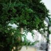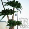 Thick, wooden trunks rise and split into five to allow five carefully created bushes of juniper leaves bursting outwards from a singular point with varying lengths of branches to add texture and interest to each canopy of leaves.
