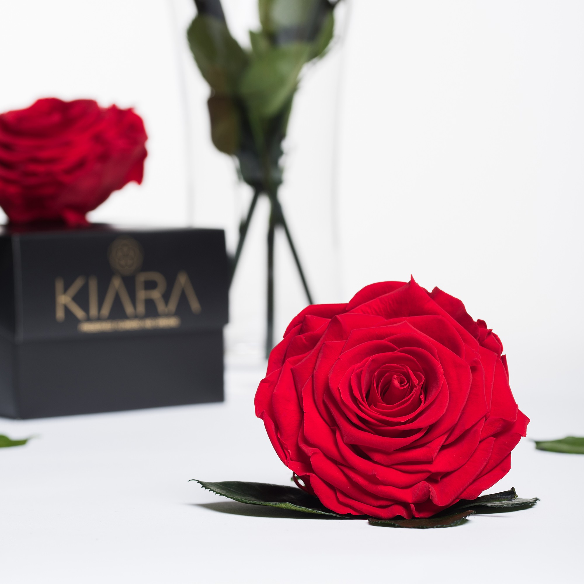 A fulsome rose replete with an intricately layered petal structure and designed to be the centre of attention. Our Kiara Solitario has the potential to light up any room or setting with its dynamic beauty.