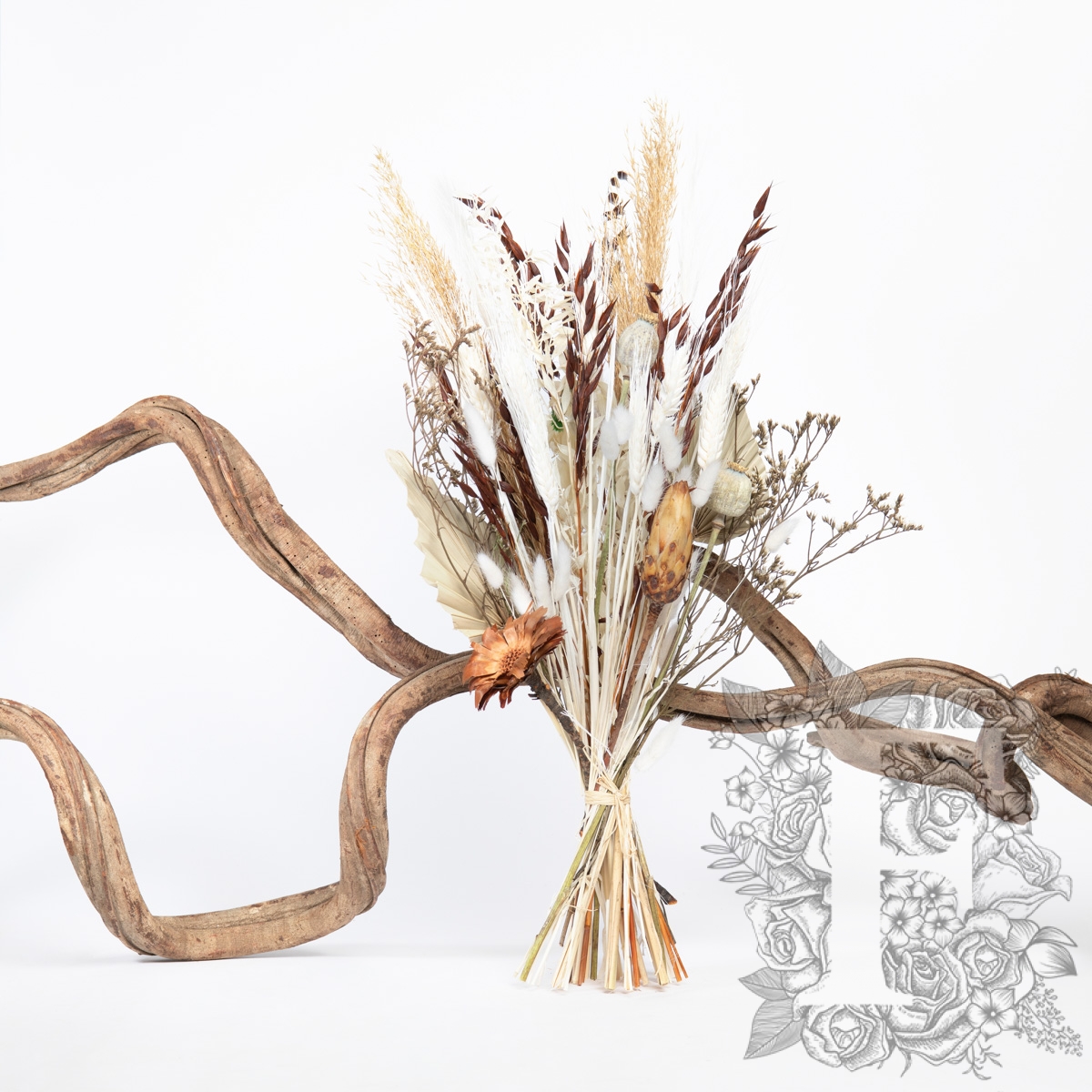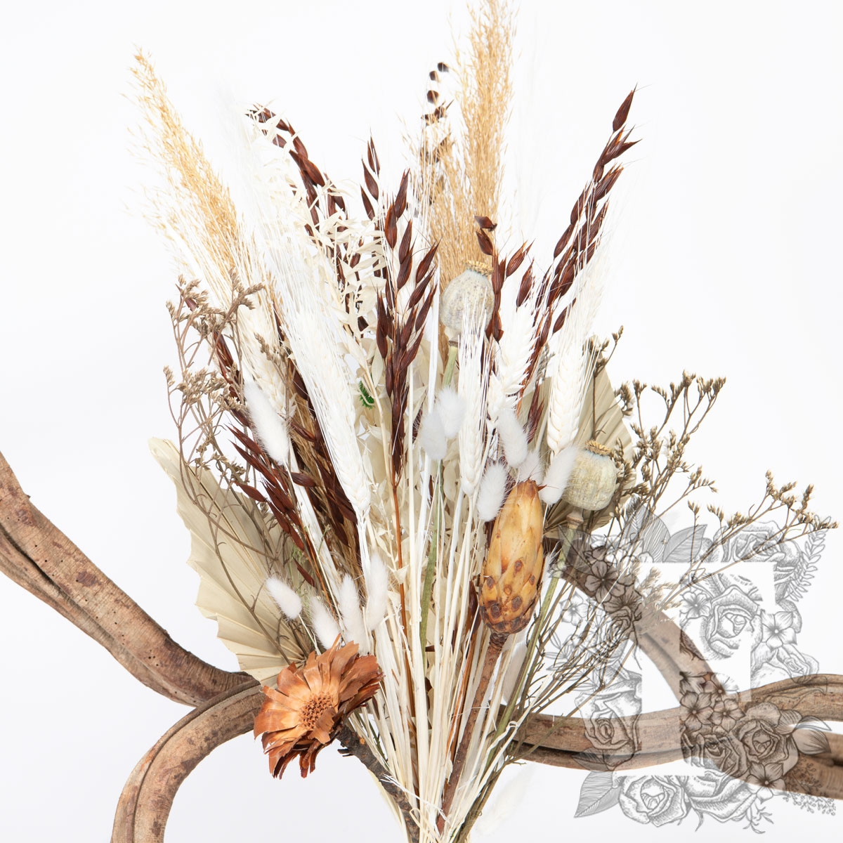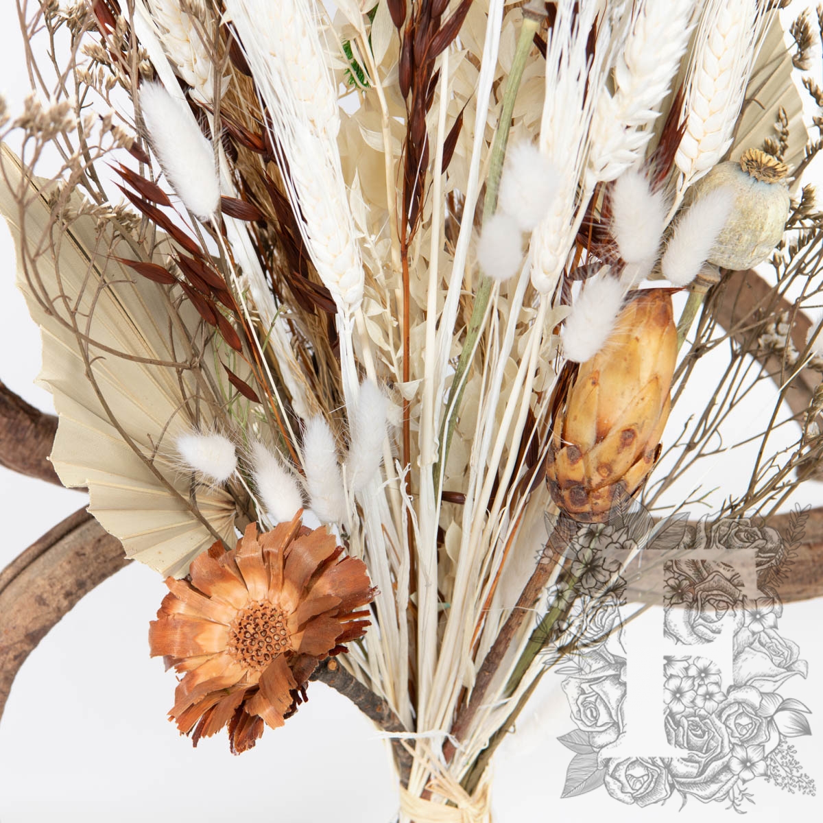 Our Large Bouquet in Natural from our Ready For Retail range is a sandy toned bunch that’s subtle and elegant. The handpicked selection of preserved flowers and foliage is curated to a professional standard. The neutral brown and cream shades of the mixed bouquet make this product highly versatile in any setting.