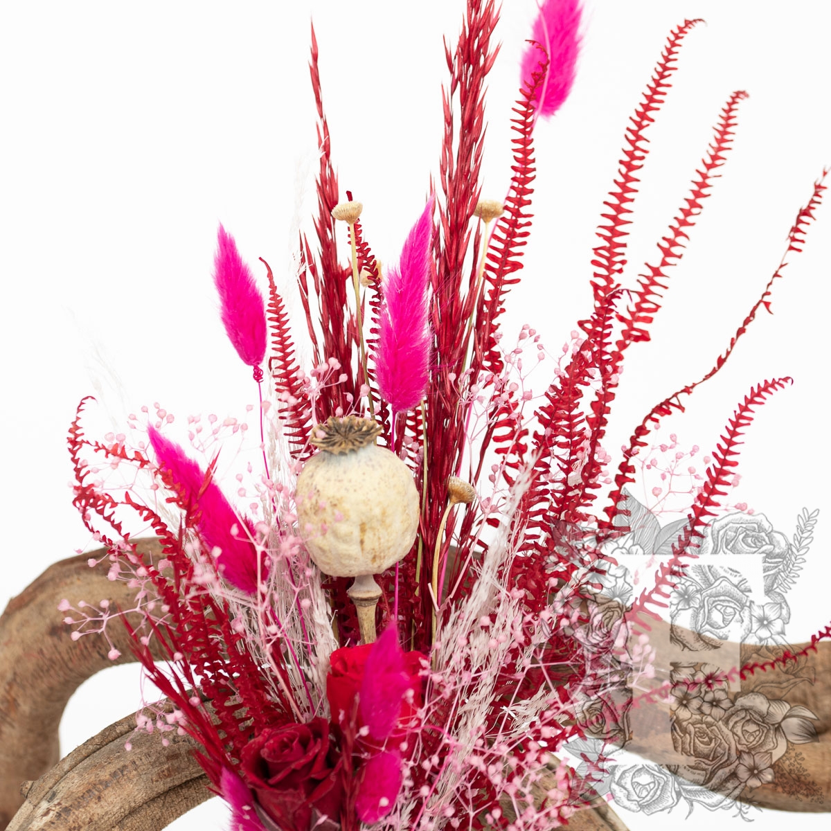 This pretty in pink bouquet is a gorgeously vibrant addition to our Ready For Retail range. The handpicked selection of preserved flowers and foliage is curated to a professional standard. Hues of pinks, fuchsia, and creams, this mini bouquet is boldly beautiful.