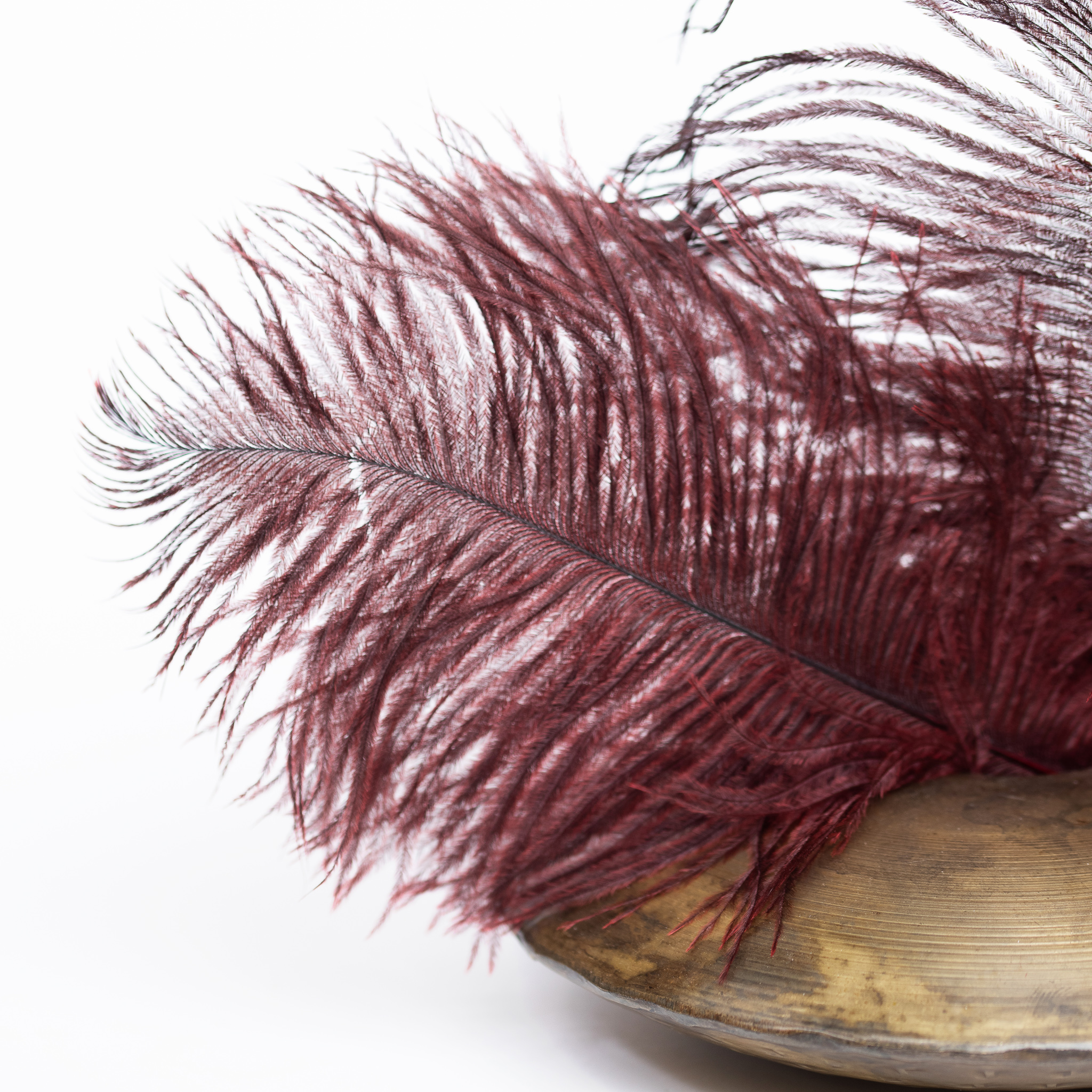 This natural Ostrich feather, with its deep red hue and wispy barbs is a great choice for adding a flourish to your creations. A plume used in the right place can fill out your arrangement and introduce a completely new texture with a dash of colour. Adding some feathers to your arrangement could add some much needed whimsy to an otherwise-traditional floral design.