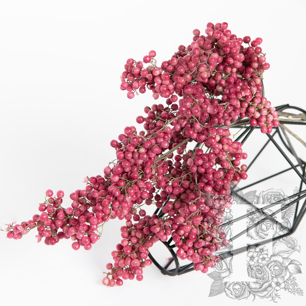 Stems without any greenery, boasting a full body of pepper berries, whose colours contain a very subtle variety, with lighter/darker shades that allow for a beautiful ‘filler’ addition to the majority of arrangements. Pepperberry also has a very fluid arched bend when held upright.