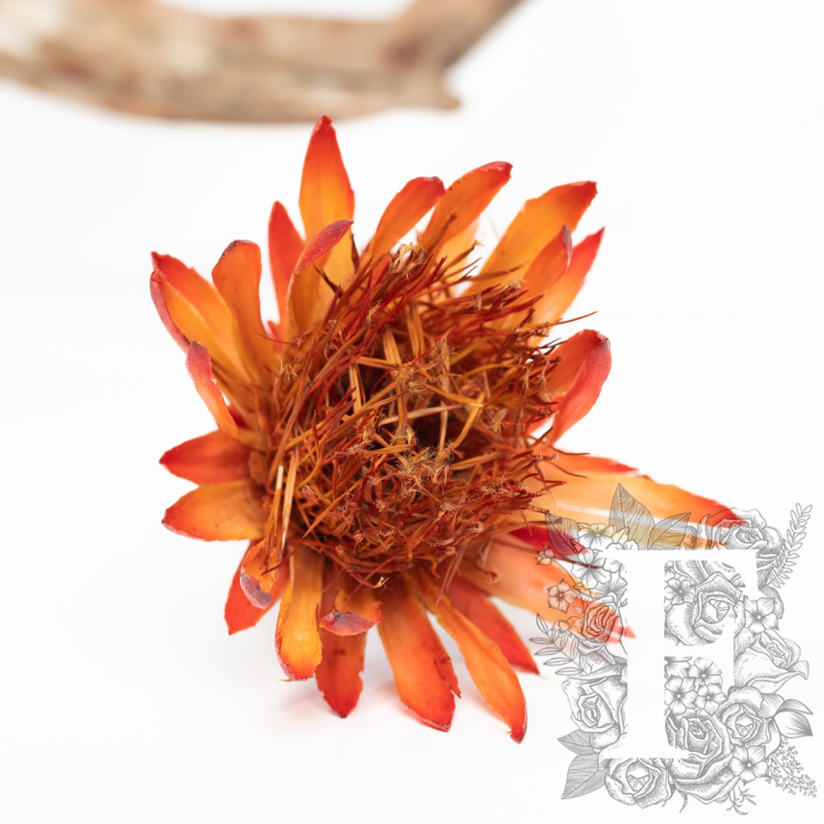The warm hued Repens Open is showcased beautifully by its flurries of oval shaped petals, in an intricate formation around the round centre. This preserved dry flower is brimming with tasteful angles, texture and dimension. These flowers work perfectly in Bohemian style displays, whether they be around the home, in window displays, or event decoration.