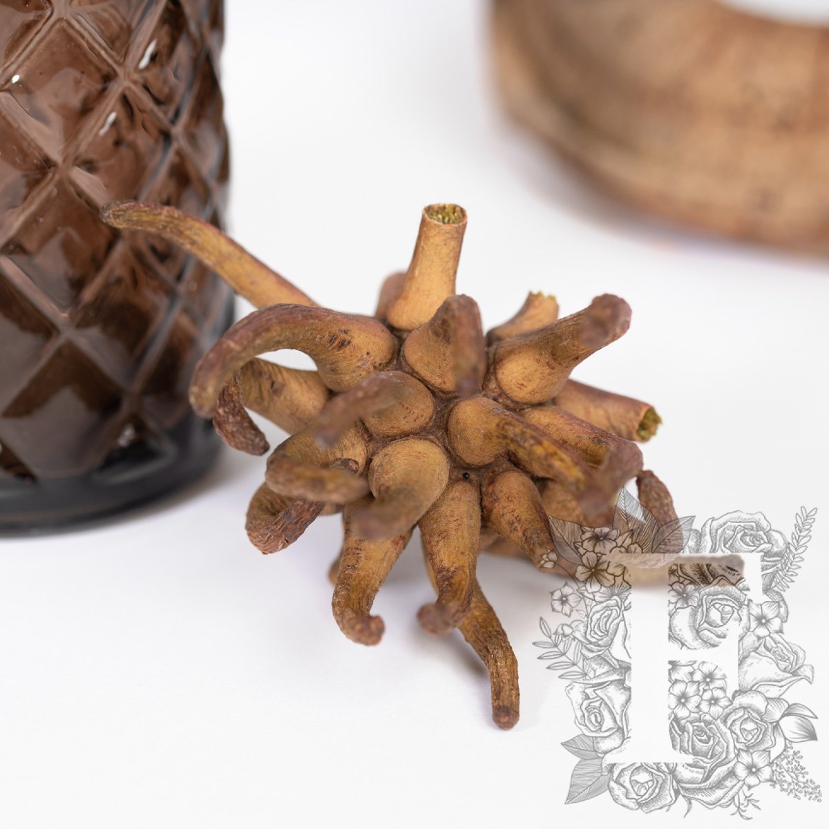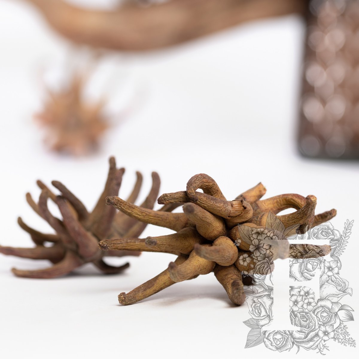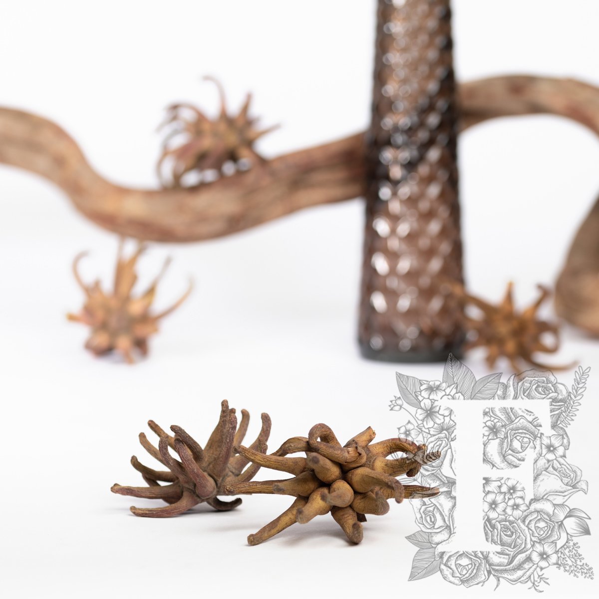 In its natural habitat, the Spidergum Claw grows into fine grasses, however, when dried it takes on a distinctively spider-like appearance. The twisting wood-like peninsulas disperse from its head, giving corporate events, spa, or office arrangements an exotic touch.