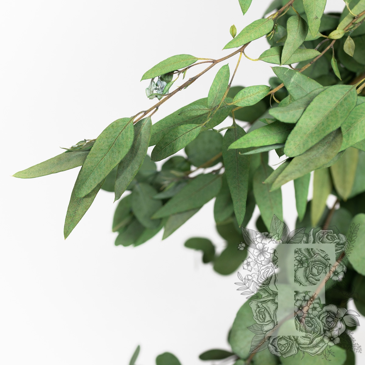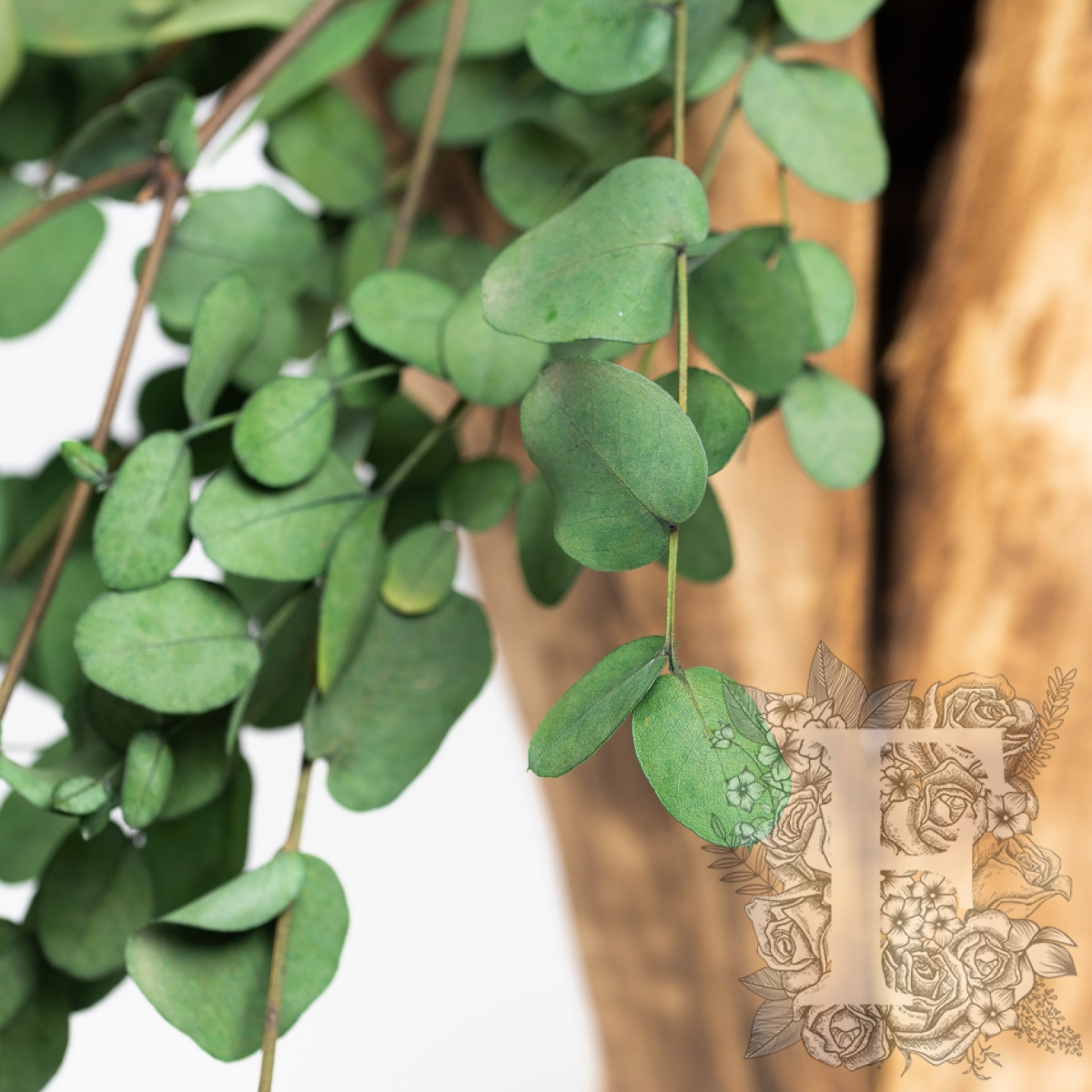 As part of our Eucalyptus collection, the Stuartina makes for a wonderfully diverse preserved filler foliage. The Stuartina has a rustic selection of circular as well as long and narrow leaves. This gives the foliage a strong and thickened effect, making perfect natural filler for arrangements and bouquets, suitable for a range of home, hospitality, and corporate interiors.